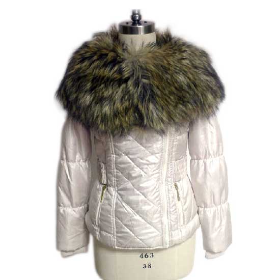 This is a ladies' jacket boasting a fashionable and elegant design with a shiny surface. It features a unique fur collar which makes this jacket stand out from the rest. With excellent craftsmanship, this stylish jacket surely is an ideal choice for keeping you warm in the cold winter.