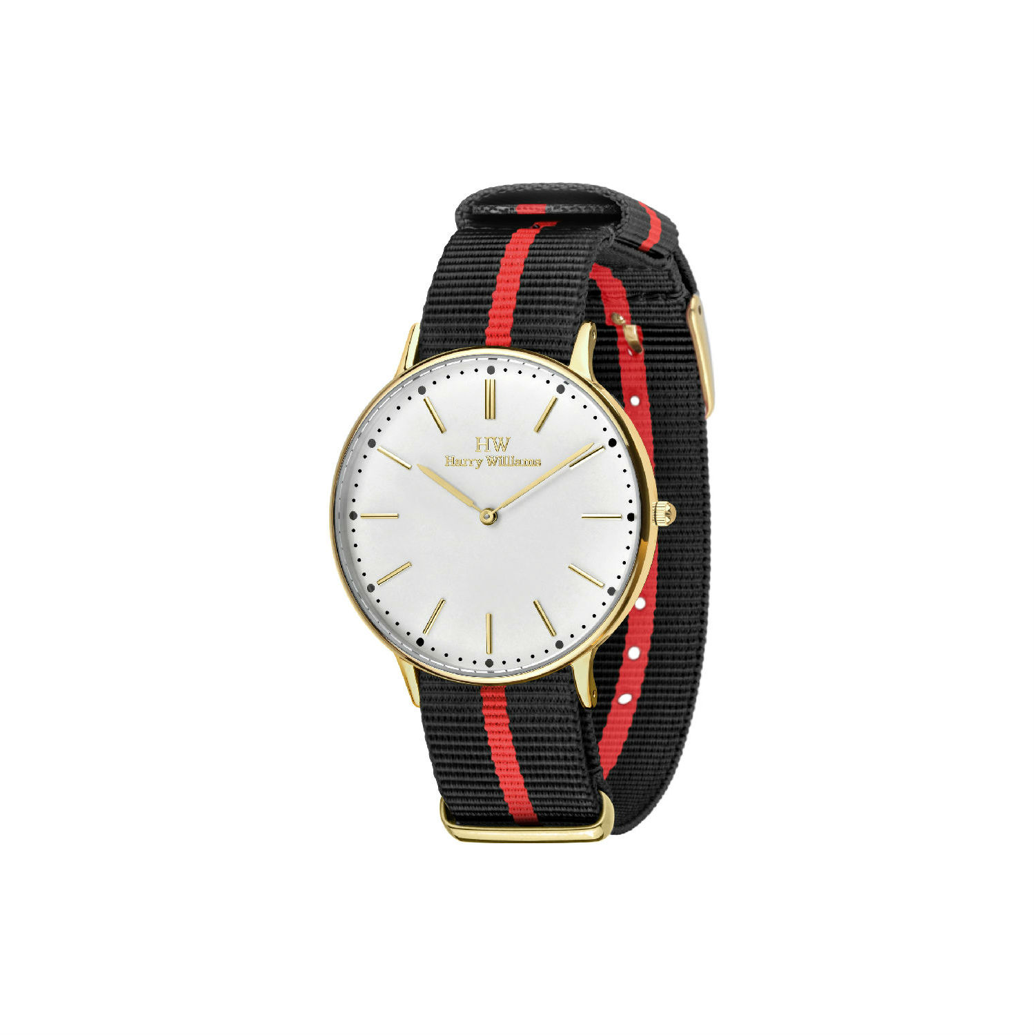 Define your fashion statement with this wristwatch. The gold case is sturdily made of IPG materials to keep its aesthetic power for years. The white dial is home to the hour and minute markers for easy time-telling. Highlighted by a black-and-red striped band, it makes a bold look to your wrist.