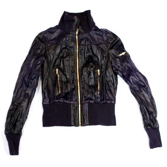 The ladies' jacket features a front zipper closure and two zipper pockets. The distressed texture adds a touch of uniqueness. This jacket has finely finished cuffs and hemline.
