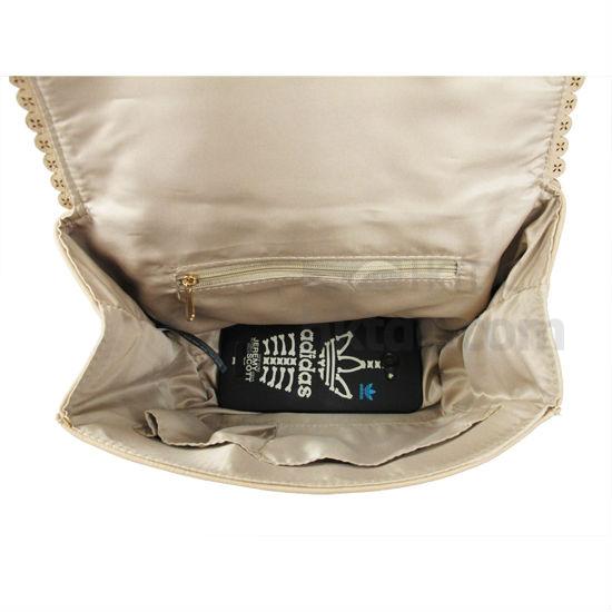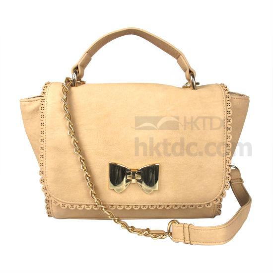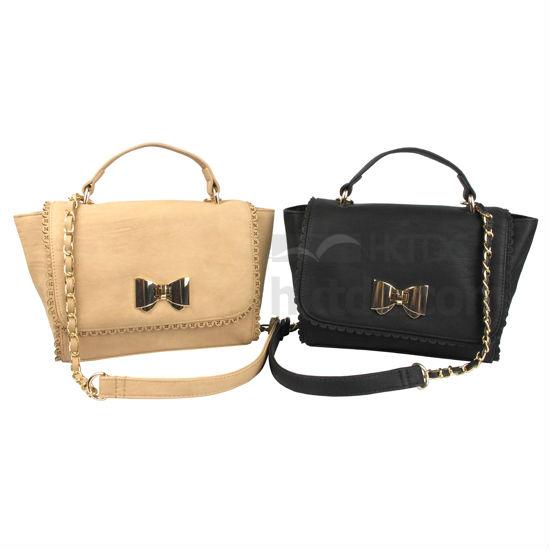 Flap cover with a gold-tone metal ribbon bow embellishment.