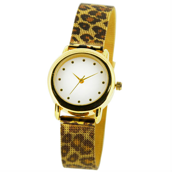 Add a twist to your outfit with this edgy wristwatch. The watch strap features fashionable leopard print. The watch case comes in plain gold color for glamorous charm. Light and fashionable, this wristwatch can complement casual clothing easily.