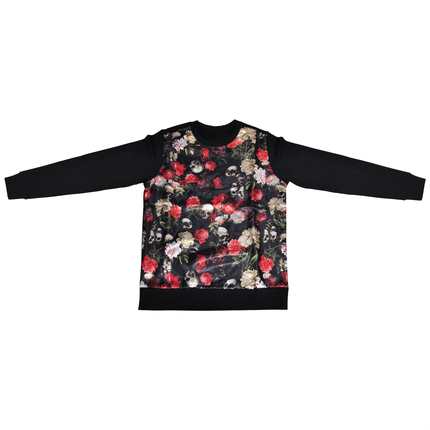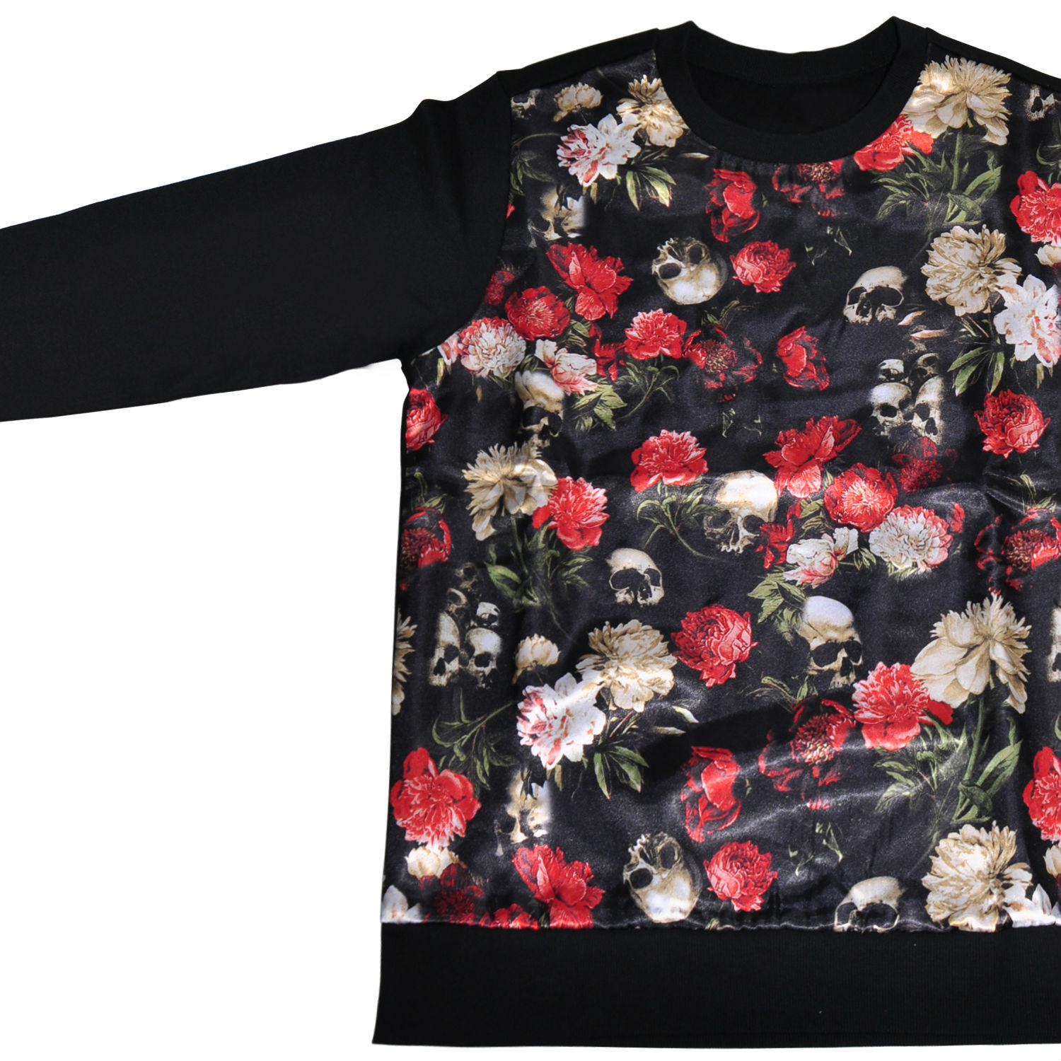 This pullover sweatshirt is fronted with a bright floral and skull patterns. The long-sleeved relaxed silhouette is crafted with ribbed cuffs to keep you warm and cozy. This pullover sweatshirt pairs with your favorite jeans for a casual outfit style.