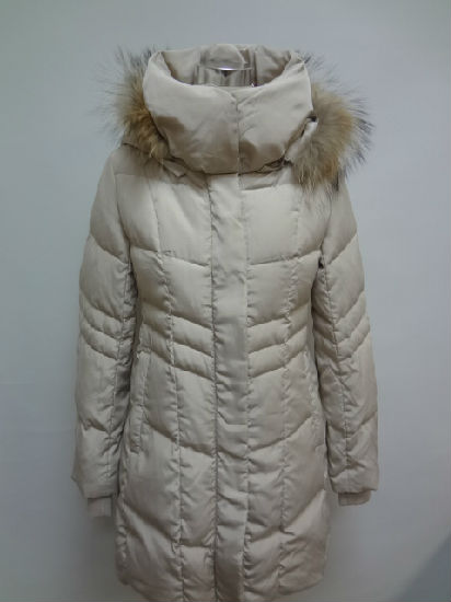 Lady's down coat with raccoon fur.