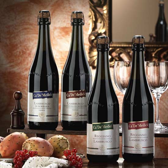 This wine boasts a fresh and sweet taste from premium Lambrusco Reggiano grapes. The highly-distinctive wine tastes sharp and fruity. The wine is perfect to go with pizzas and fruit desserts.