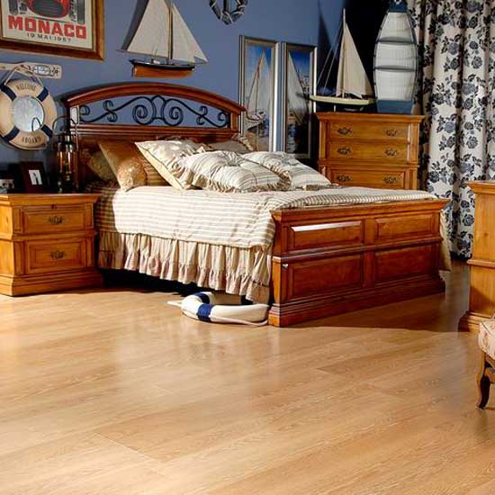 The showcased laminate floor comes in peaceful beige with delicate wood grain. It is easy to install and requires little maintenance. This classic and beautiful floor caters to a range of indoor styles.
