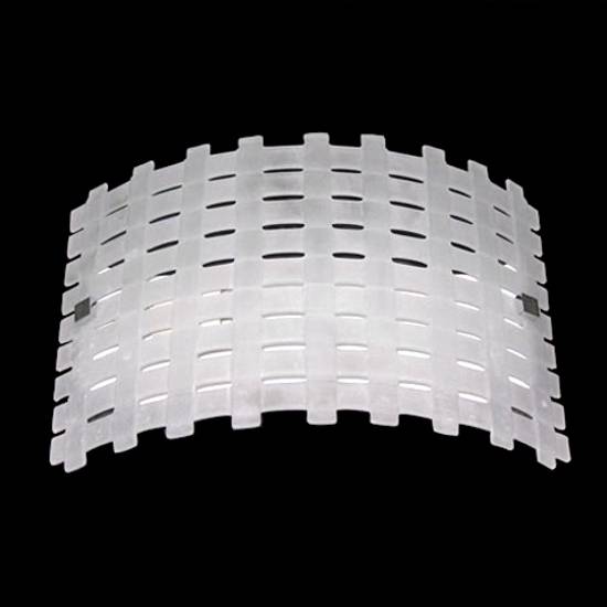 This is a simple yet elegantly designed white lamp. The lamp is versatile in its usage and can function as a wall lamp or a ceiling lamp. A reticular pattern is featured on the lamp.