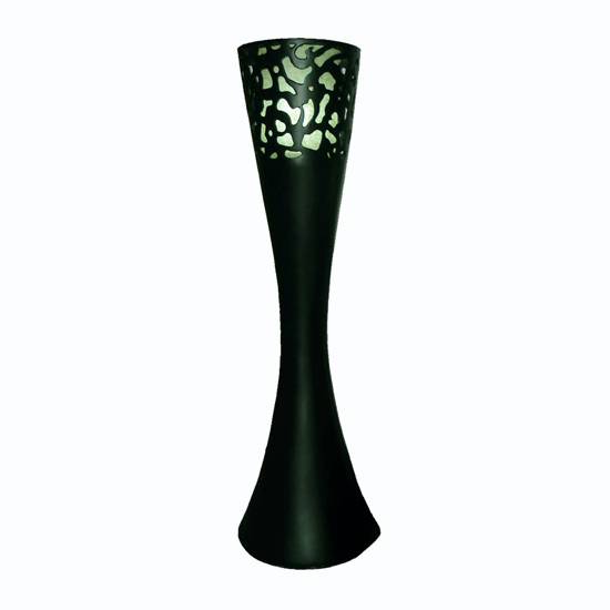 This is a black matte lamp with natural abaca. The streamline design gives it a unique appearance. Moderate light emitted from the lamp patterns on the top adds character to the lamp. Its black colour and the streamline design altogether give the lamp an elegant feeling.