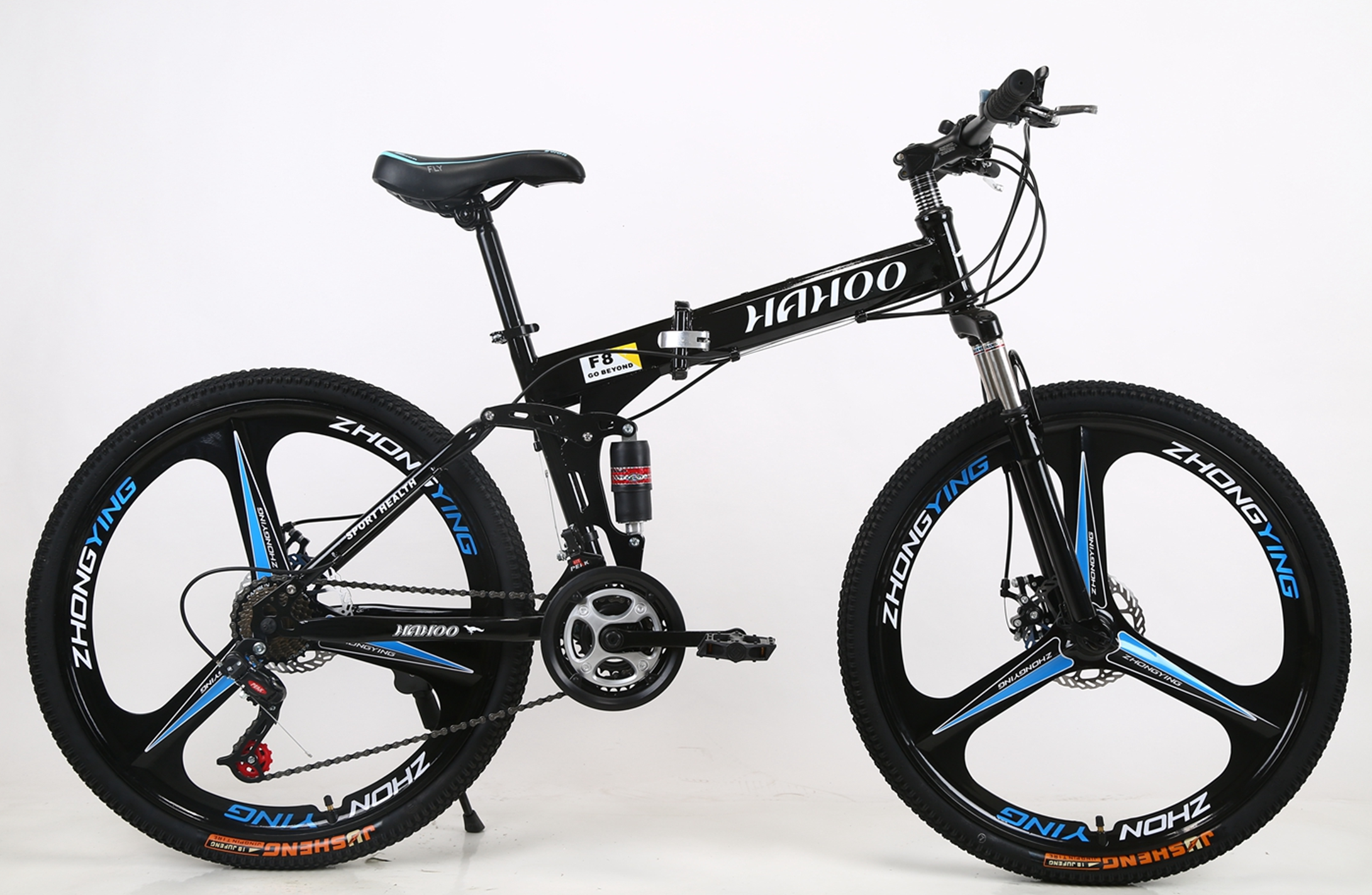 High carbon steel folding soft tail frame, spray coating, dual shock absorbers, dual disc brakes, magnesium alloy integrated wheels, domestic transmission system (30 finger shift 50 rear derailleur), Hengqi/Huanyu/Jusheng 26×195 tires, natural rubber inner tube