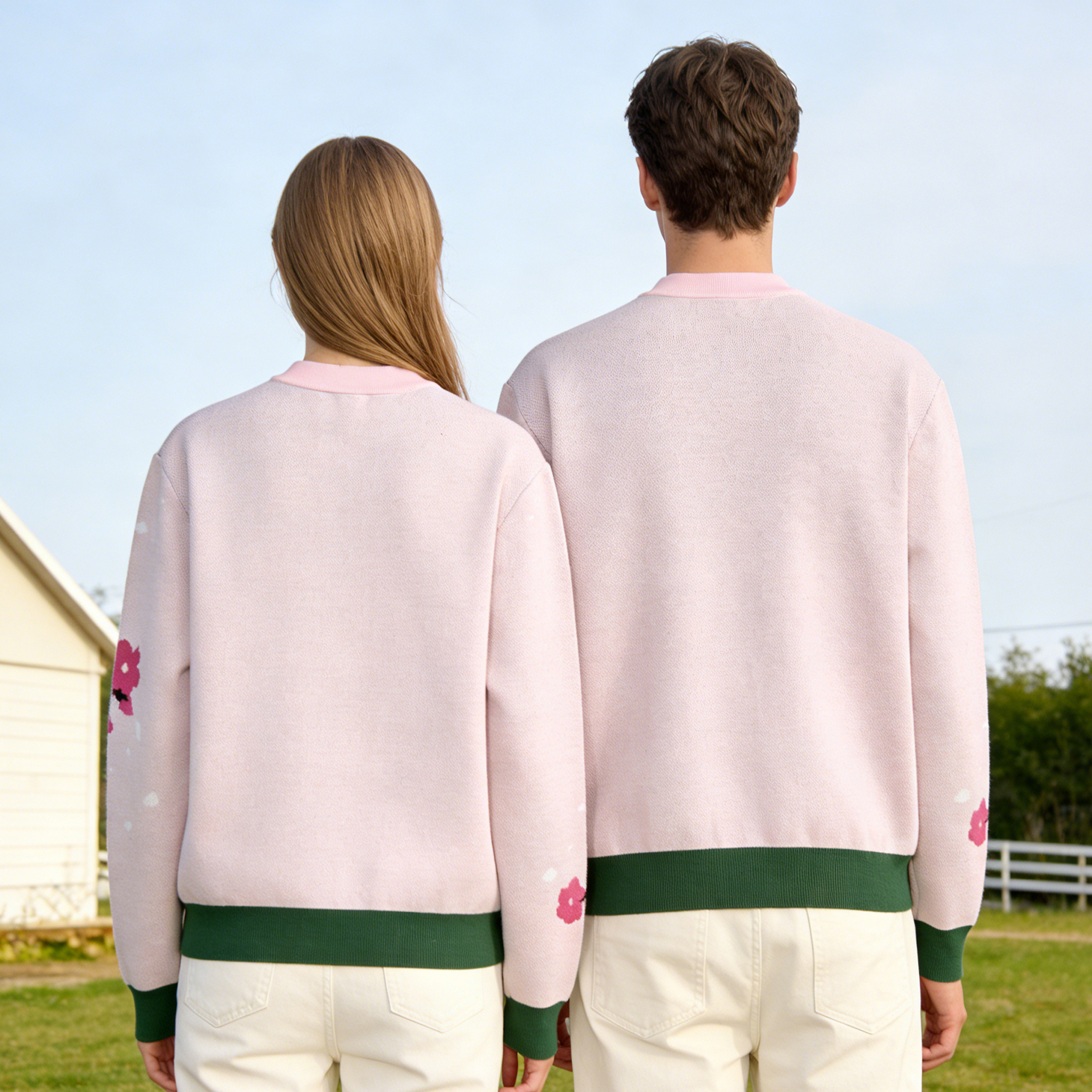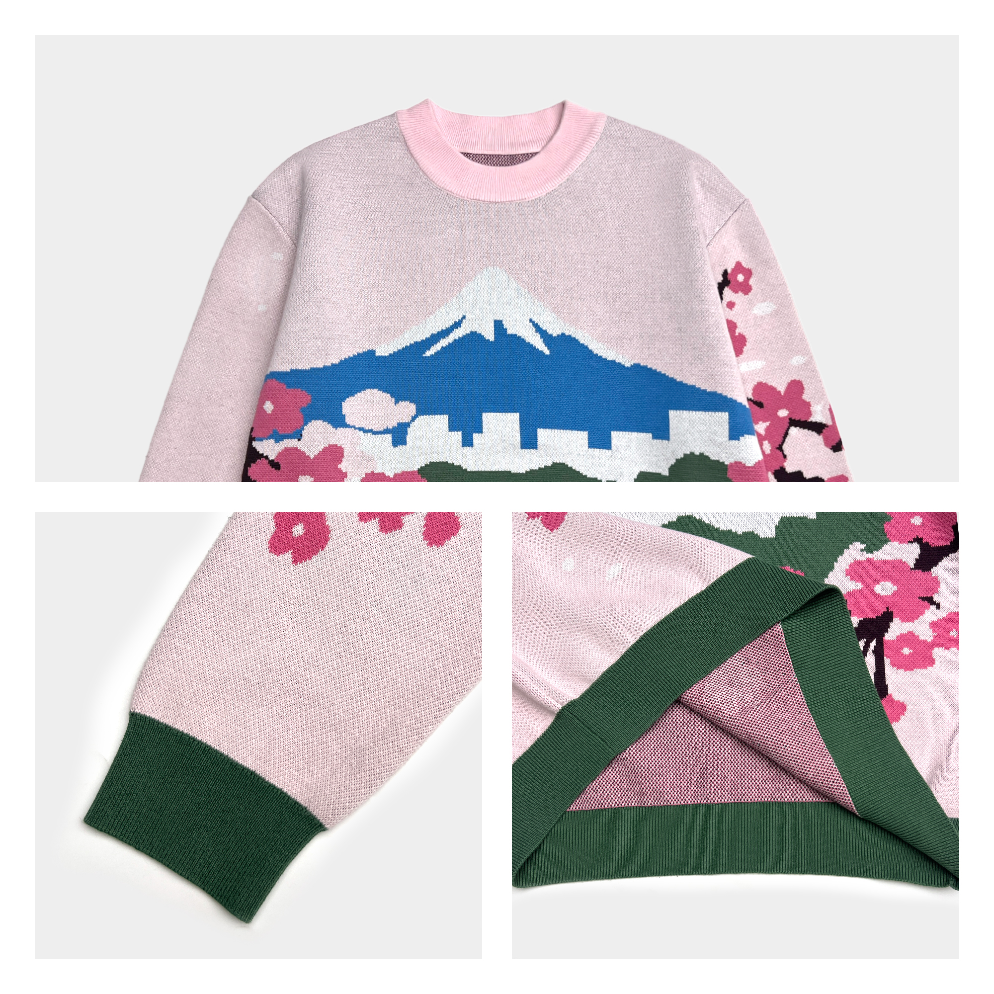Landscape Jacquard Patter Pullover Crew Neck Knit Sweater