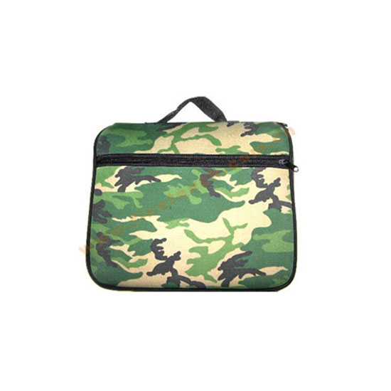 This laptop case is accented with camouflage patterns for a decorative touch. It is fitted with a zip-up closure and a top handle. This laptop case offers long-lasting durability.