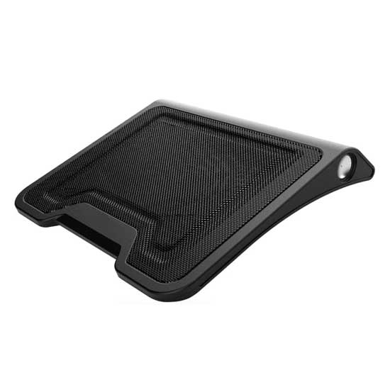 Displayed here is a laptop-cooling pad designed to prevent your laptop from overheating. It is ergonomically designed for maximum viewing and typing comfort. This laptop-cooling pad features a pair of built-in speakers, allowing excellent sound quality.