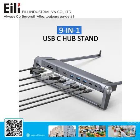 - 9-in-1 USB-C Docking Station: Comprehensive Connectivity: The stand features a versatile 9-in-1 USB-C Hub, expanding your laptops capabilities with the following ports: USB-C to HDMI: Connect to external displays with support for 4K resolution at 60Hz, providing crisp and high-definition video output. USB 3.0 Ports (3x): Enjoy fast data transfer and connectivity with three USB 3.0 ports, perfect for connecting peripherals and external devices. SD/TF Card Slots: Access and transfer files from SD and TF memory cards, ideal for photographers and content creators. Power Delivery (PD) 100W: Charge your laptop and other devices efficiently with up to 100W power delivery, ensuring optimal power management. LAN Port (1000Mbps): Connect to high-speed wired networks with a 1000Mbps LAN port for reliable internet connectivity. Audio Port: Easily plug in headphones or speakers with the integrated audio port for enhanced audio experience.