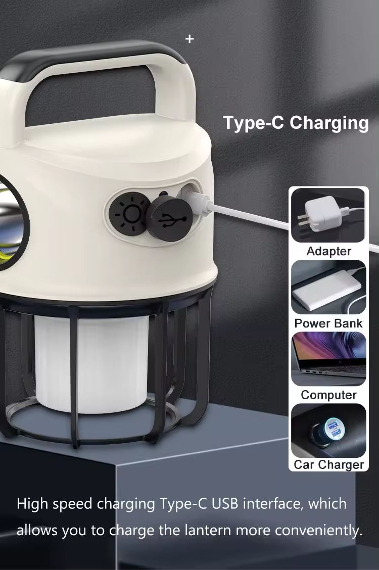 The high-speed charging Type-C USB interface allows you to charge the lantern more conveniently.
