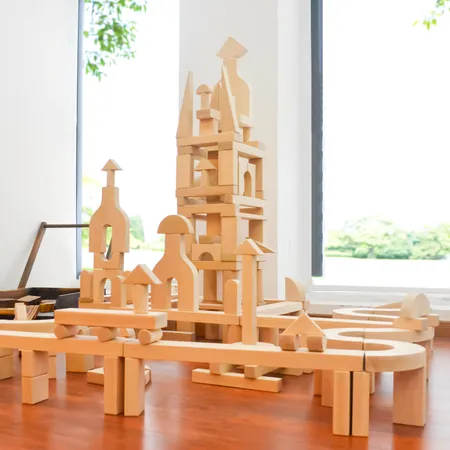 The Construction Activity Series encompasses a wide variety of building blocks in diverse colors and materials. It includes blocks made of pine wood, beech wood, rubber wood, acrylic, cork, and other materials, each offering children distinct experiences by providing them with different tactile sensations and visual color perceptions; thus, satisfying their curiosity. The blocks are filled with boundless creativity, adding more fun and versatility, and featuring even more colorful and varied designs.