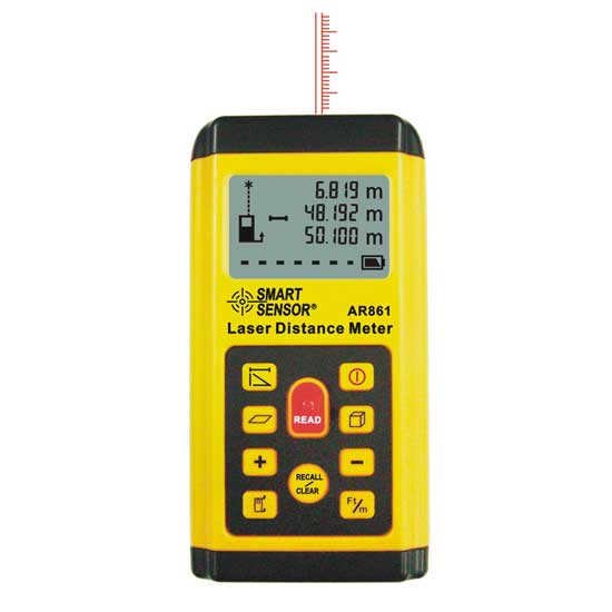 Shown here is a laser distance meter with a digital display. It features a user-friendly control panel for easy operation. This laser distance meter is a great choice for professional technicians.