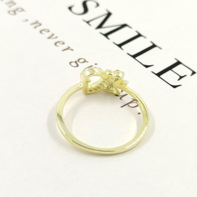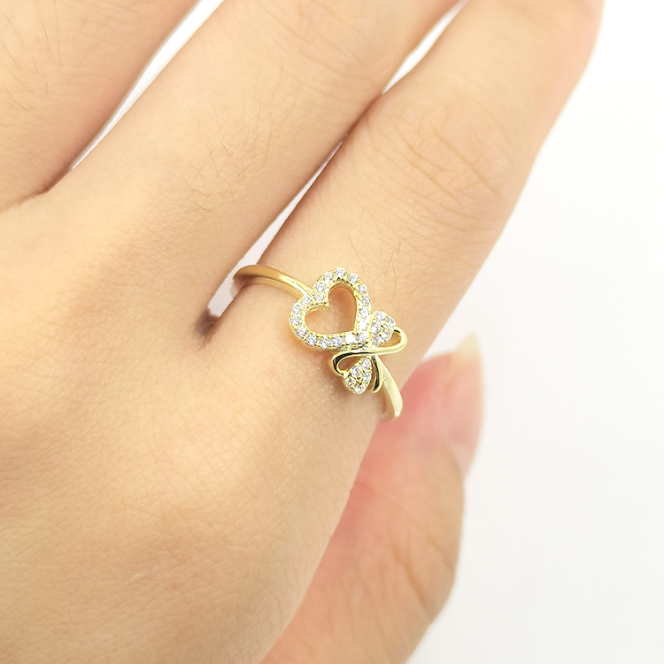 Leaf Design Hollow Out Heart Small Zircon Silver 925 Rings