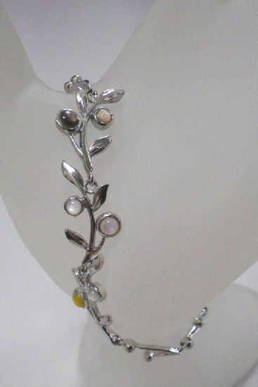 Lend a special charm to your wrist with this beautifully crafted bracelet. The highlighted bracelet features an engraved leaf design with colored mother-of-pearl beads to the surround. The sterling silver construction ensures the shine will last long with proper care.