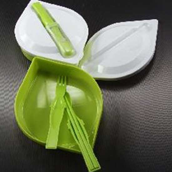 The adorable leaf design adds a touch of uniqueness. It includes one set of 3-1 cutlery/chopsticks set embedded in its anti-leaked PE lid. The lunch box is microwave/dishwash safe.