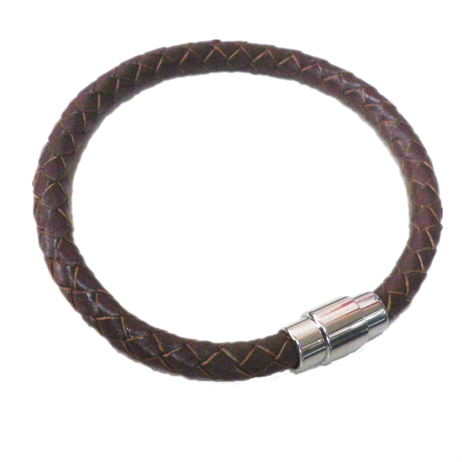 This is a fashionable leather bracelet. It comes in a variety of colors with a unique buckle.