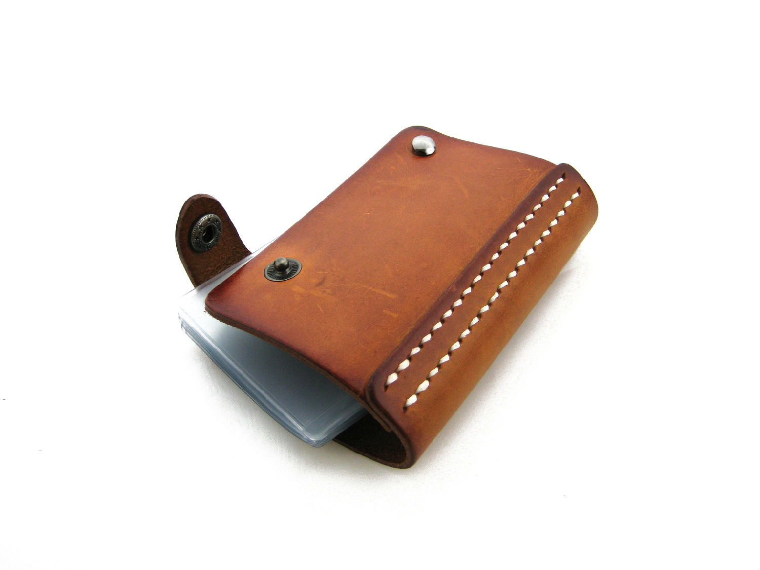 Card holder in vegetable tanned leather.