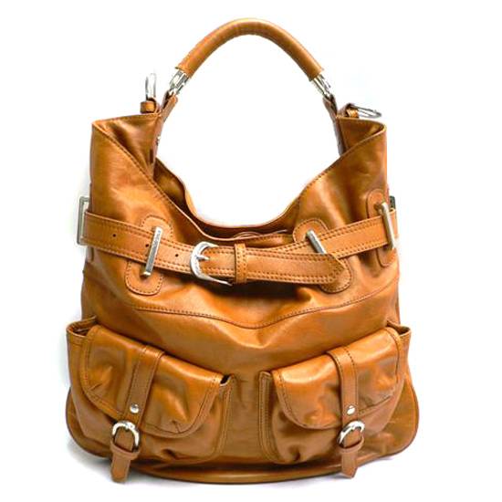 This is a fashion handbag made of real leather with attractive lustrous surface. The leather handbag is designed with tough style with brown color. The sophisticated handbag matches well with office wear and smart casual clothing style.