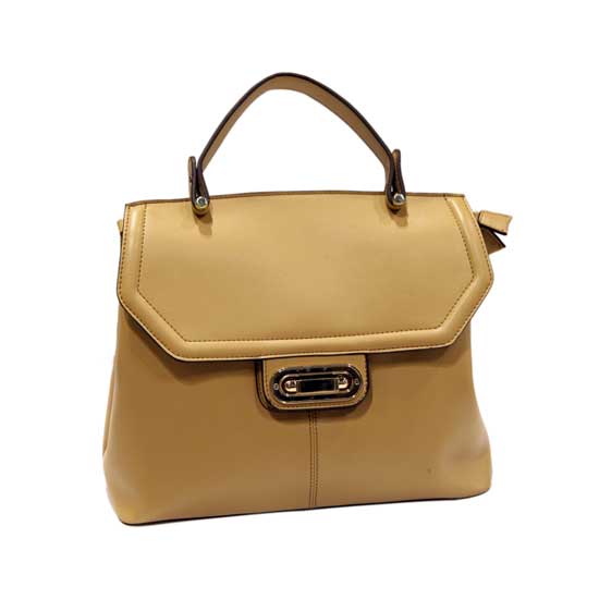 This is a ladies’ leather handbag in mustard yellow. It is gracefully designed with a flap-over closure and a grab handle. This classy leather handbag pairs well with business wear.