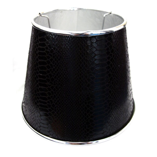 Pictured is a lamp shade that boasts a sophisticated leather finish. The natural-grain patterns offer added elegance and class. Spice up any desk lamp with this exquisite lamp shade.