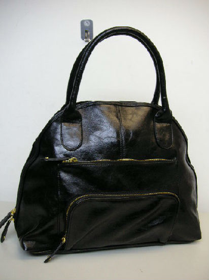 Have two zipper pocket on the front, the zipper puller make with self-material. The zipper puller have studs decor.