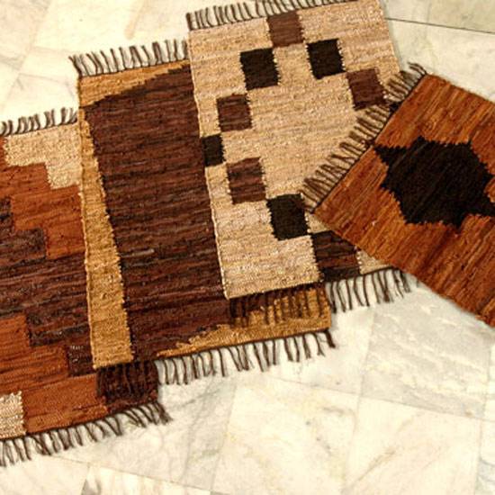 Featured here are some rugs. They are made of leather. Different designs and sizings are available upon request.
