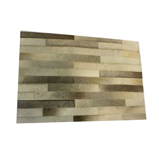 Pictured is a leather rug that is accented with wooden-like patterns. It is finely made with exquisite craftsmanship. Spice up your home entrance with this stylish rug.