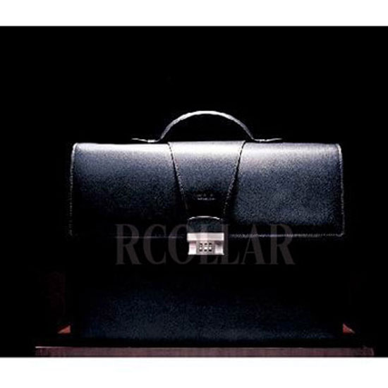 This black suitcase features a classic rectangular shape with a top handle and a metal buckle on the front. The suitcase contains multiple compartments for satisfying all your business needs. This stylish and practical suitcase makes an essential accessory for every businessman.