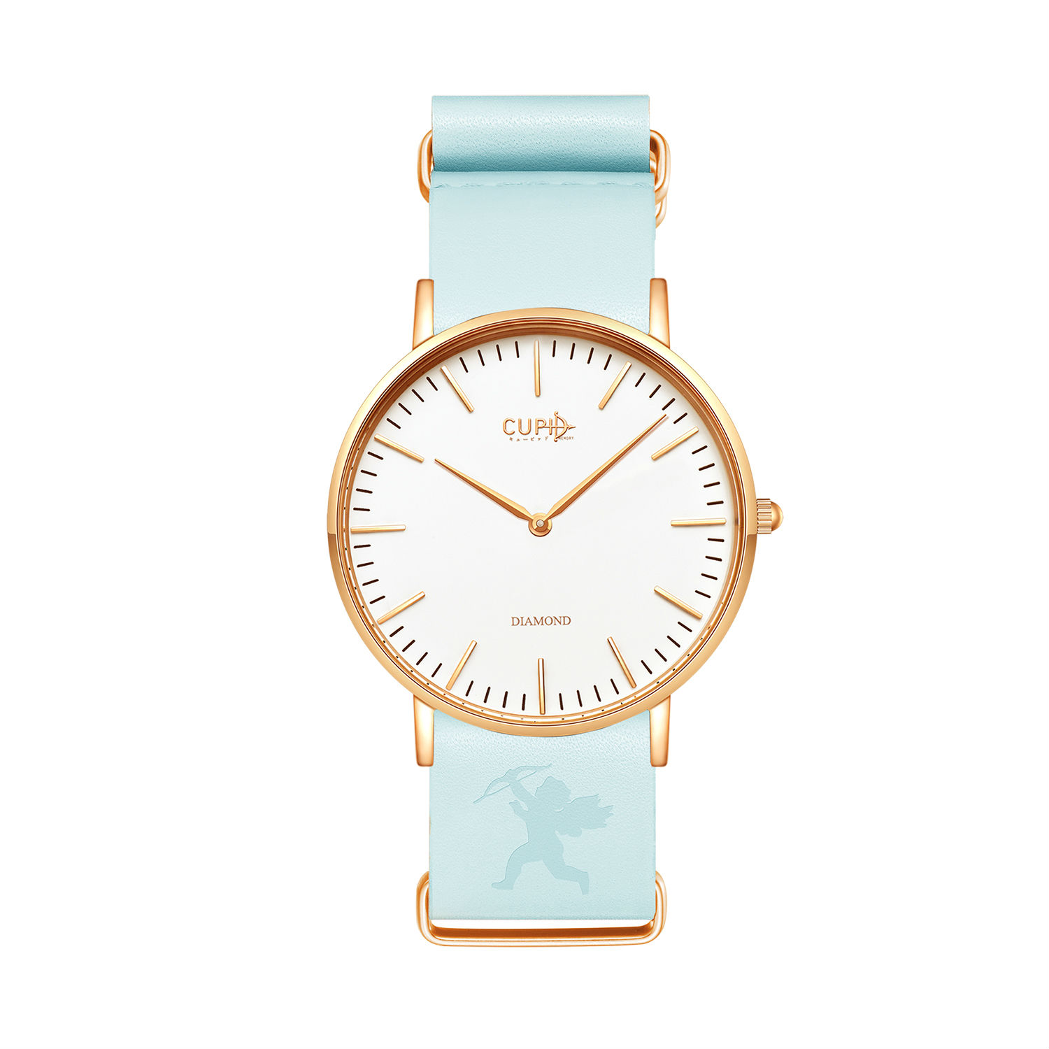 A tribute to minimal elegance, this leather watch is meticulously crafted with a stainless steel case and a light blue strap for everyday wear. The timeless round face of mineral crystal looking glass finish tells the time in professional Japan quartz movement to keep up with your schedules. The slim dash indices further grounds the overall design a clean and confident persona.