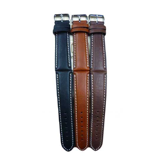 The displayed watch strap is crafted from Italian calf leather for a high-end touch. It is completed with a roller buckle for a customized fit. The neat white stitches show excellent craftsmanship.