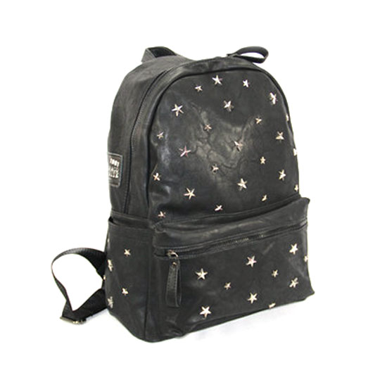 This is a fashionable backpack in allover black. It is meticulously adorned with silvery star accents on the back and two sides. The ergonomic straps give you enhanced comfort for all-day-long wear.
