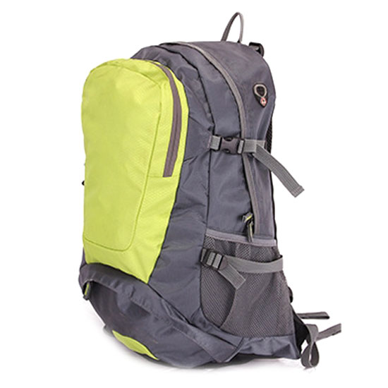 This is a leisure backpack that comes with a two-toned look in green and gray. It is fitted with a large main compartment and several pockets. This leisure backpack is secured with a user-friendly zippered closure.