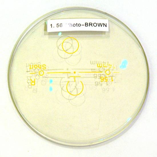 This is a lens (1.56 photo) in color of brown. The thin lens is made of quality material and is hard and durable for use. It can be produced for glasses in diverse styles for men and women.