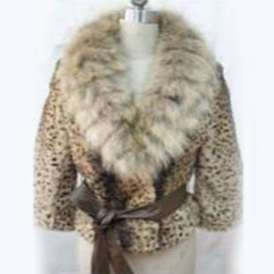 This ladies' coat impresses with a wild leopard-print design. The thick fur trimming along the V-neckline creates a luxurious accent. This eye-catching coat can definitely get you more than a few look-back stares on the street.