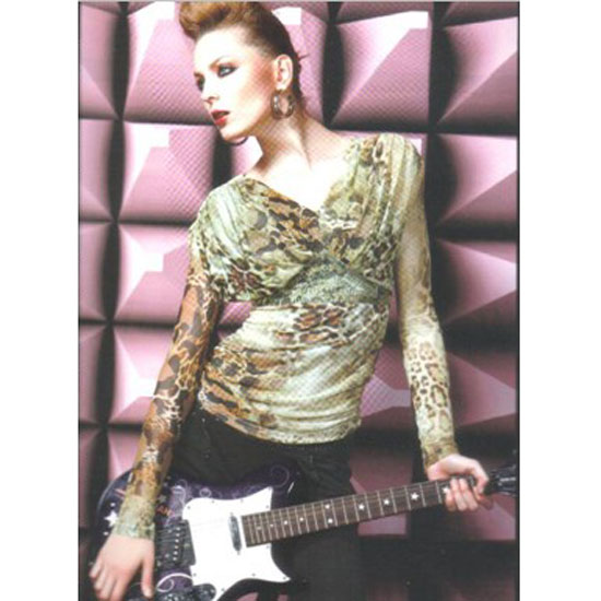 This ladies' V-neck blouse features a special pleated, bubbled shaped detail on the front. Bold animal print patterns adds a rebellious touch to your look. This eye-catching blouse is an interesting choice for fall and winter.
