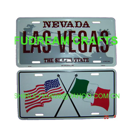 This is a decorative license plate in a rectangular shape. It is finely crafted with embossed patterns in brilliant colors. This item is a great addition to your home.
