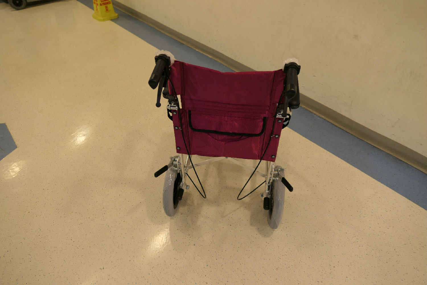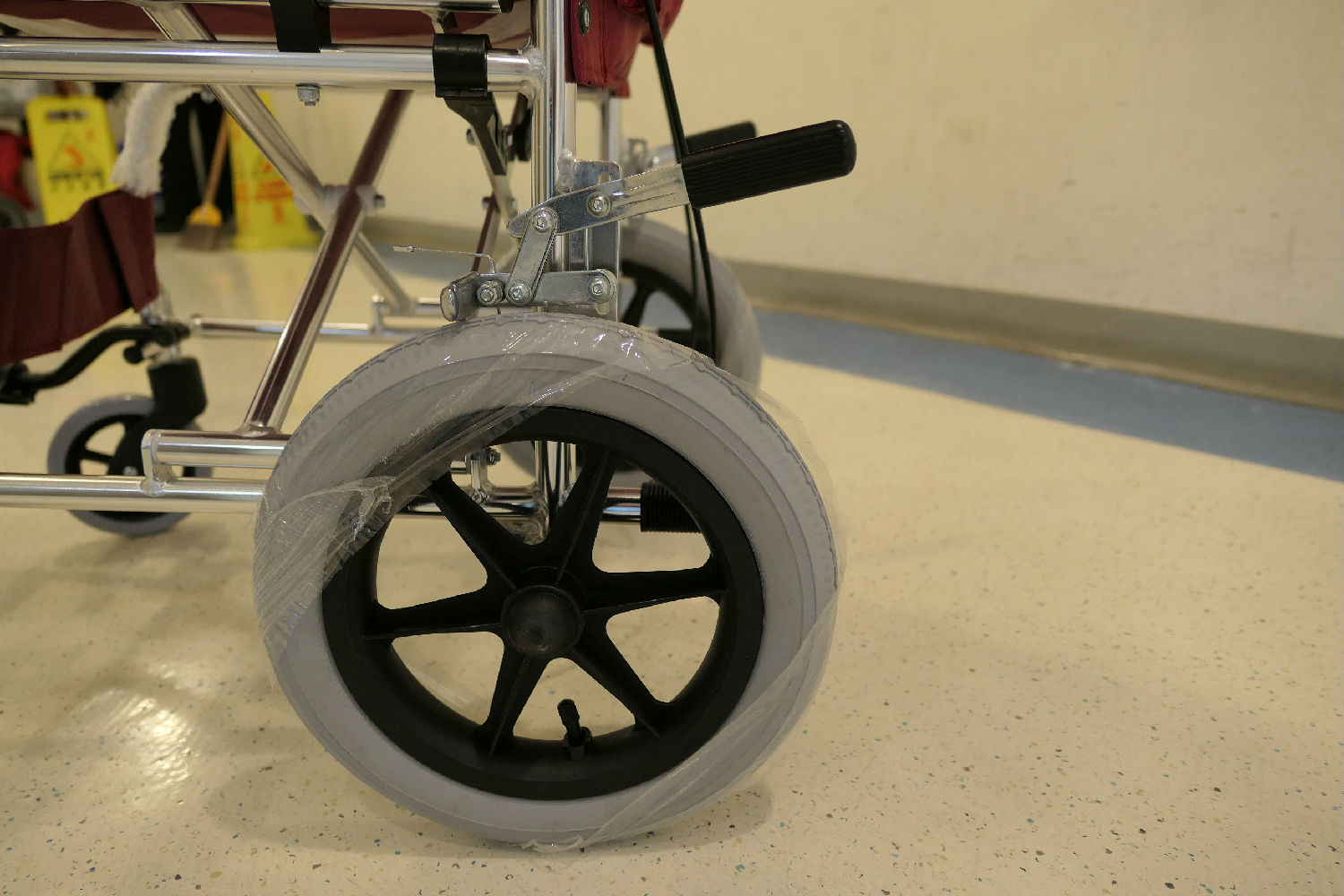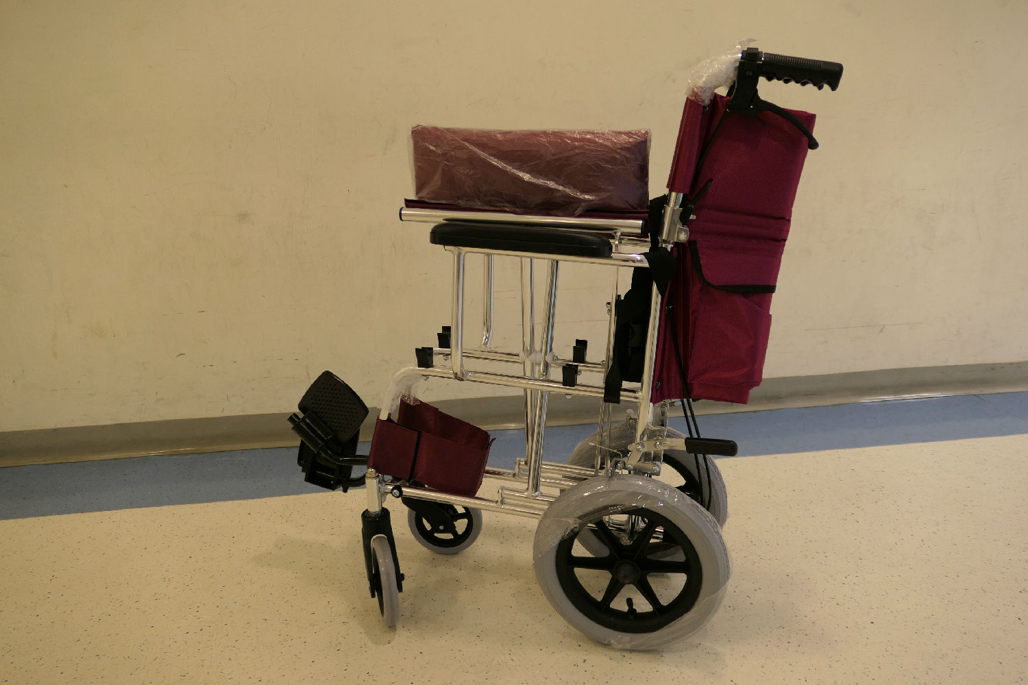Parts : Fixed armrest, flip up footrest, solid castor , pneumatic mag rear wheel, drop back handle with united brake, foldable.