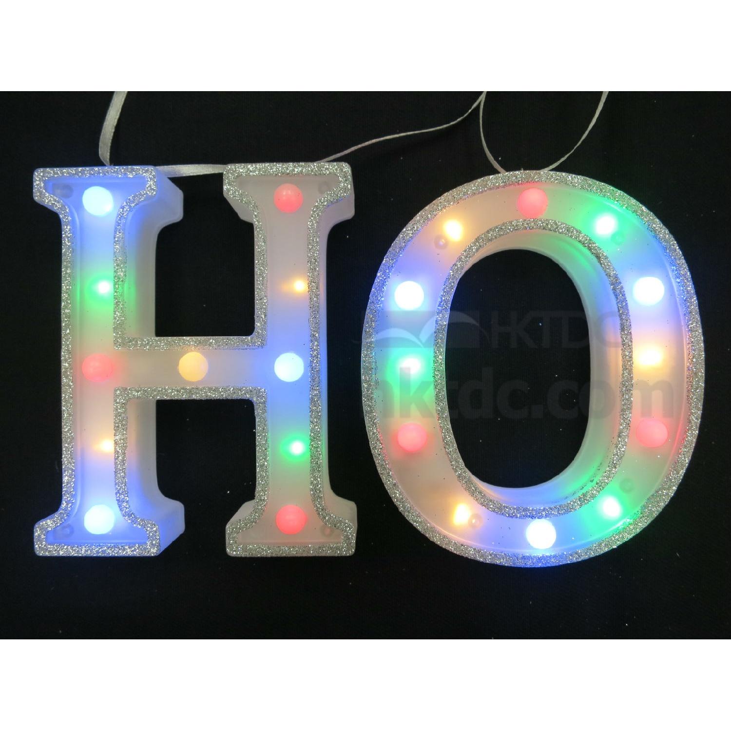 Multi LED Lighted Letter "H O H O H O" (Height 4") with Giltter,