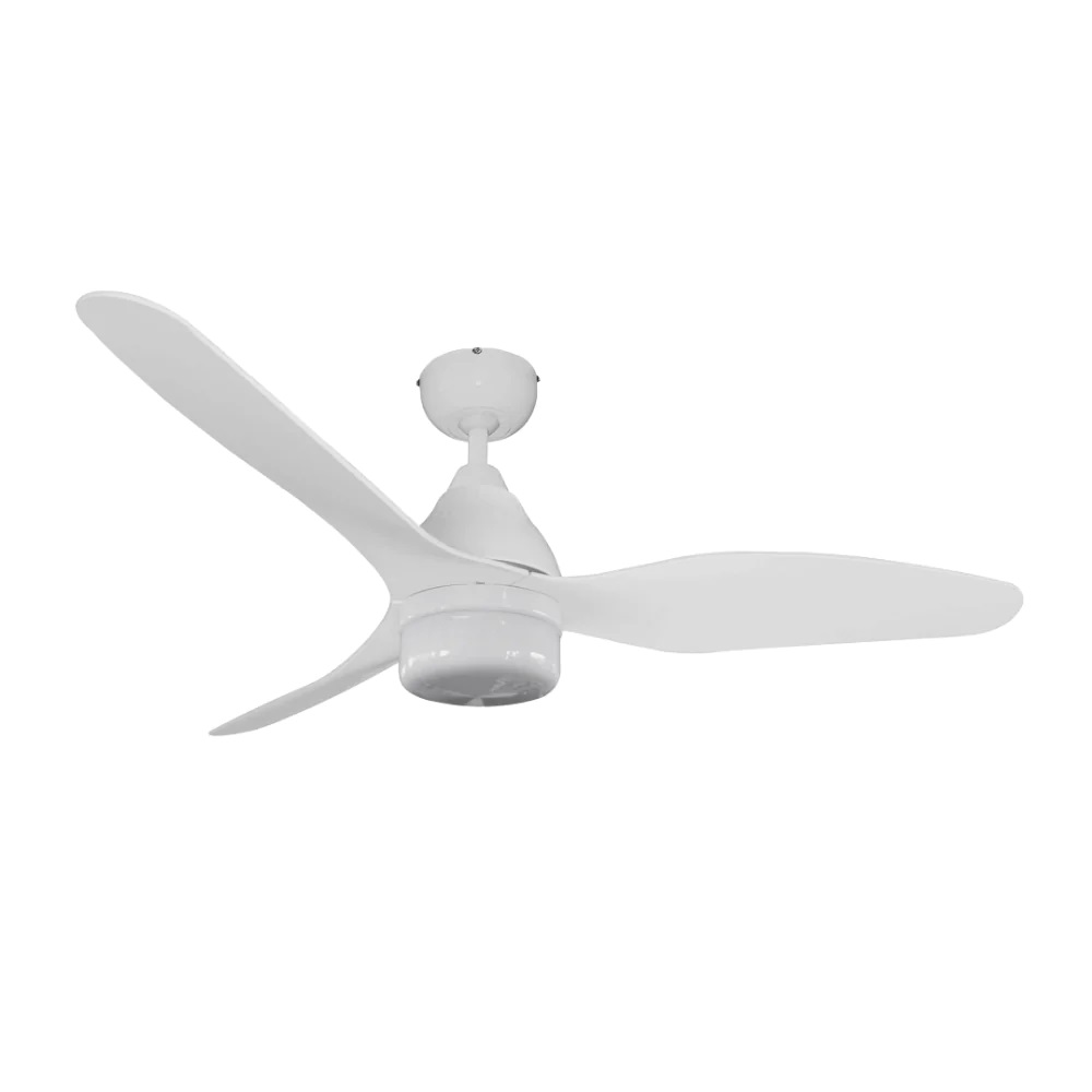 Featured here is a three blade ceiling fan with a opal clipper glass. It can generate strong airflow and is excellent for keeping cool in hot weather.