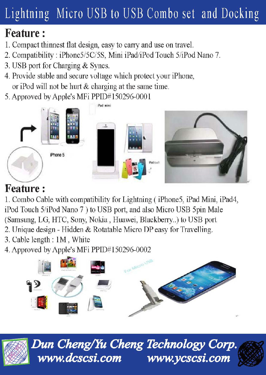 USB2.0 TO Lightning + Micro USB AND USB Combo set and Docking