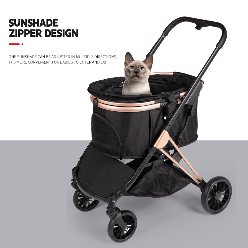 Lightweight Foldable 4-Wheel Zipperless with shock absorption Pet Stroller Trolley for Dogs Travel Shopping Walking