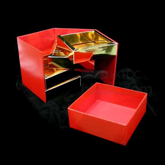 This exquisite gift box comes with a bright red outer case and 4 golden inner tiers. The gift box is made from quality cardboard with exceptional strength. The sharp-colored box adds a unique touch to your gifts for others.