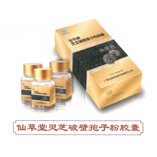 Displayed is a pack of lingzhi spore powder capsules. Made from carefully selected ingredient, this capsule is beneficial to the health, including enhancing the immune system and body endurance. This lingzhi spore powder is treated with a wall-breaking technique for an easier nutrient intake.