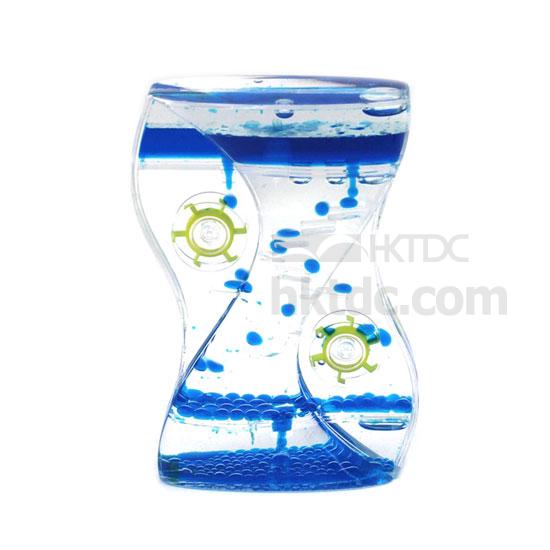 This sand clock appeals to people instantly with its unique and charming design. It features a streamlined and transparent body with liquid and blue accents inside. This hour glass makes a fine decoration on your desk.