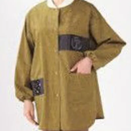 • Demonstrated is a classy bib apron in bright colored appearance.