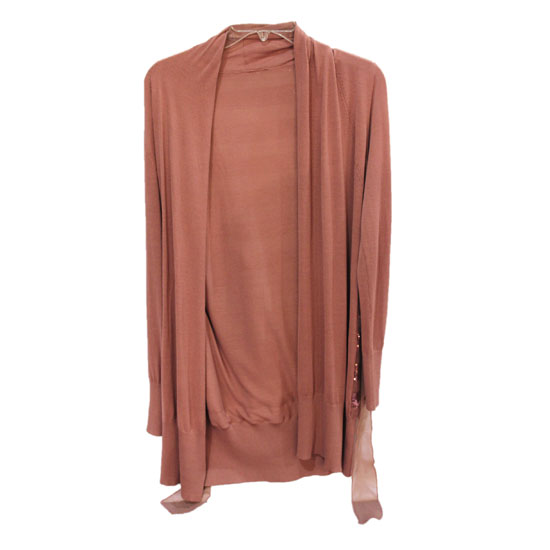 The fashionable cardigan comes with no front closure, which is great for casual wearing. The delicate nylon mesh on the back side guarantees an attractive look. The special cutting of this cardigan makes it comfortable and smart.