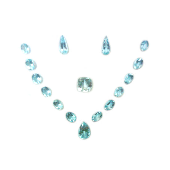 This is a set of loose aquamarine that comes in assorted shapes. Professionally processed, the stones are shiny and smooth. This loose aquamarine set is ideal for making jewelry.